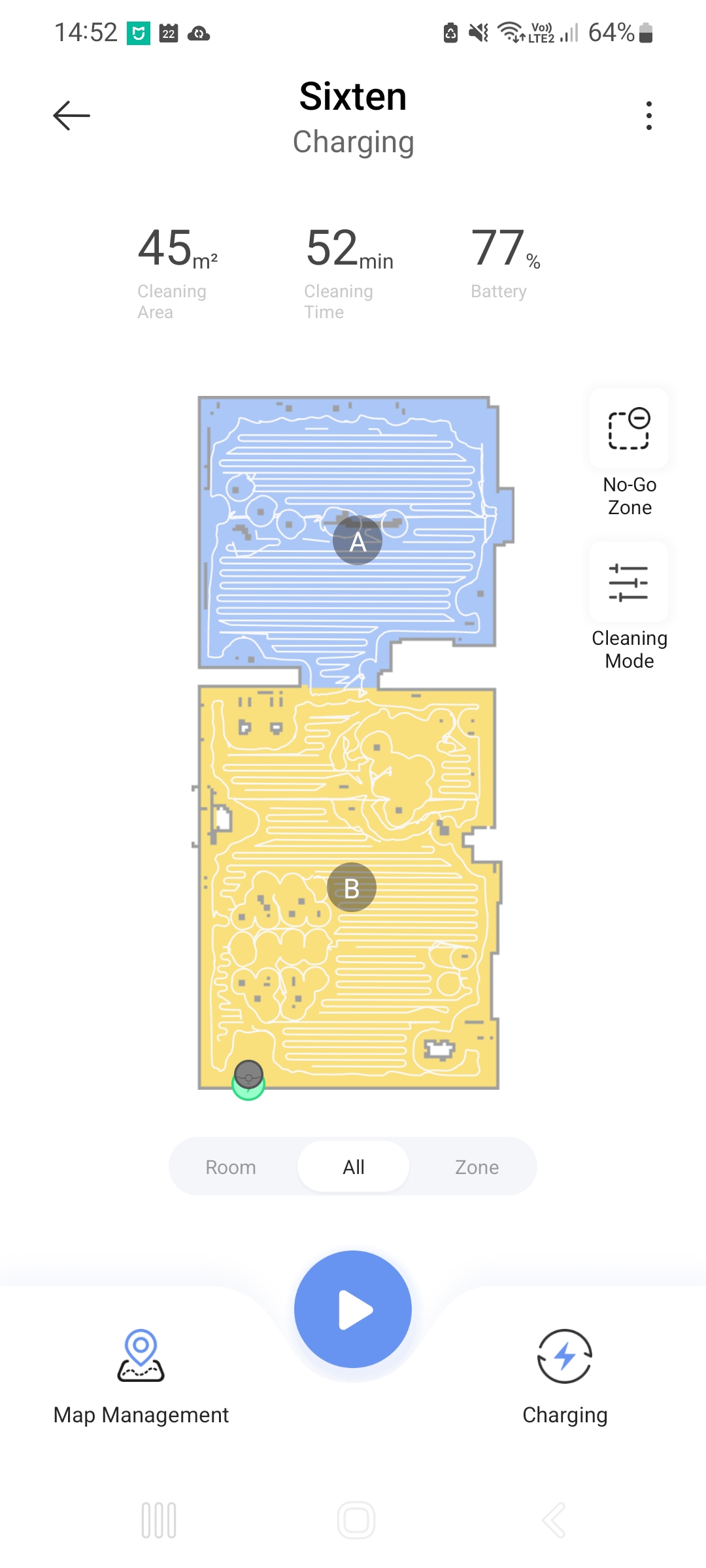 Så jeg sætter Sixten tilbage i ladestationen, lægger no-go-zoner ind efter alle kunstens regler og starter forfra igen. Nu opfører støvsugeren sig som en gentleman.