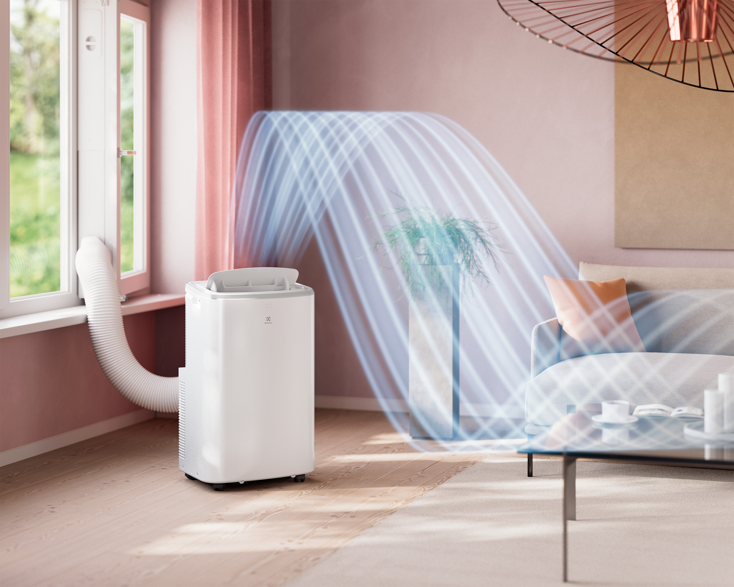 At nedkøle en overophedet stue til 20 grader tager stadig timer. Men enheden er opgaven voksen. Og da der ikke skal monteres en fast boks på hver side af muren, er det muligt at bruge den i lejelejligheder, hvor man ikke må lave huller i muren og udføre blivende installationer. Og har man ikke lyst til at have et plastkøleskab stående i stuen hele året, kan enheden rulles væk og stuves af vejen i et kælderrum i de koldere måneder.