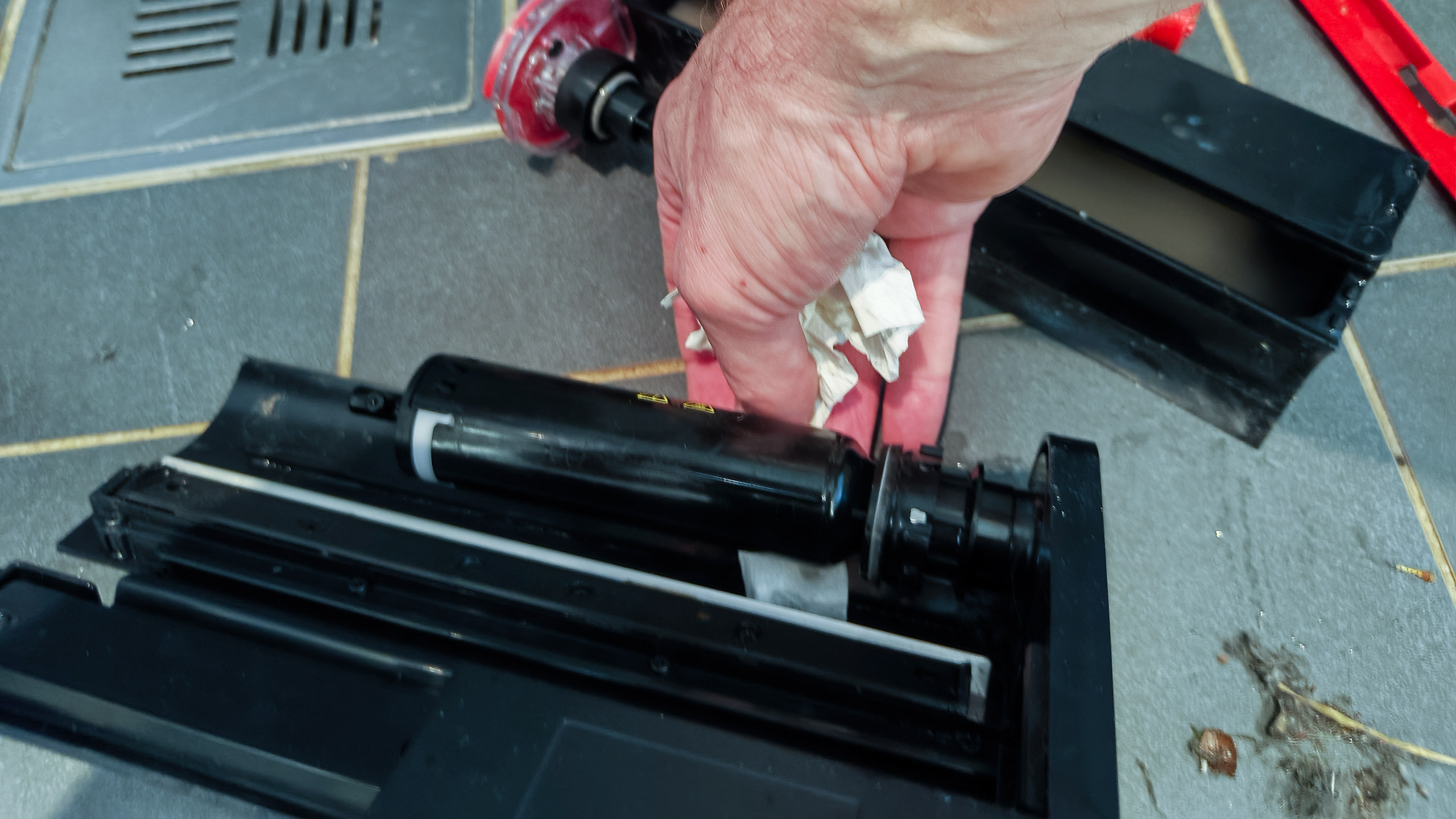 Når du er færdig med at moppe, skal du rengøre maskinen og for at gøre dette skal du klikke moppemodulet fra hinanden og trække mikrofiberrullen ud. Derefter hælder du det snavsede vand ud (som er samlet i en beholder under et rødt låg) og skyller den del af moppemodulet under vandhanen. Enkelt og praktisk. Det er også nemt at rengøre selve rullen; du skal blot skrabe snavset af og derefter skylle rullen under vandhanen og vride den, skylle den igen og vride den, indtil den er ren. Du behøver ikke at vride særlig hårdt, men du skal muligvis gentage proceduren et par gange, før rullen er ren, og den skal lufttørre i 24 timer, før den sættes på plads igen.