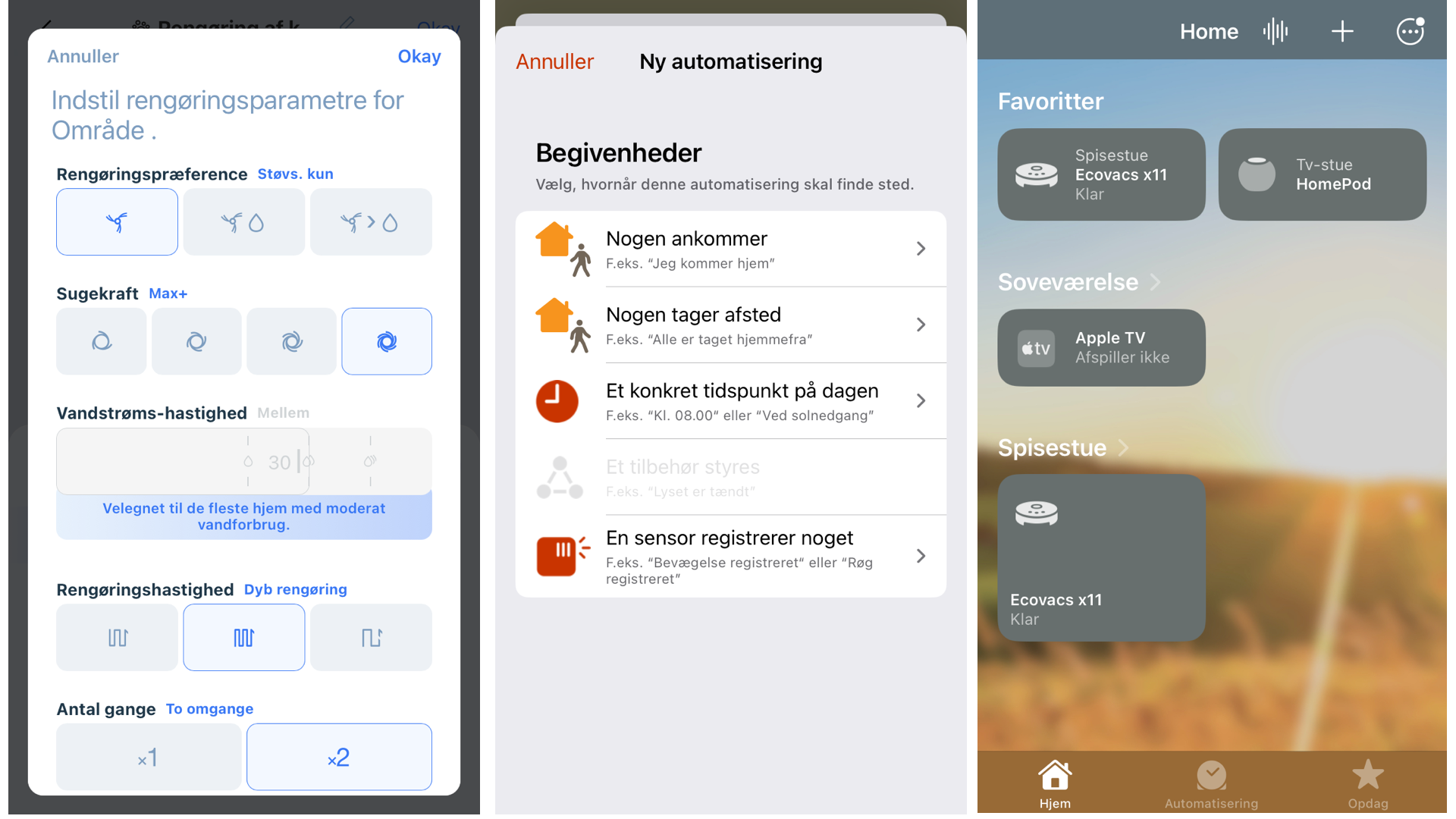 I app’en Home kan du indstille scener og betjene Deebot X11. Det meste er dog også tilgængeligt i Ecovacs egen app, EcovacsHome.