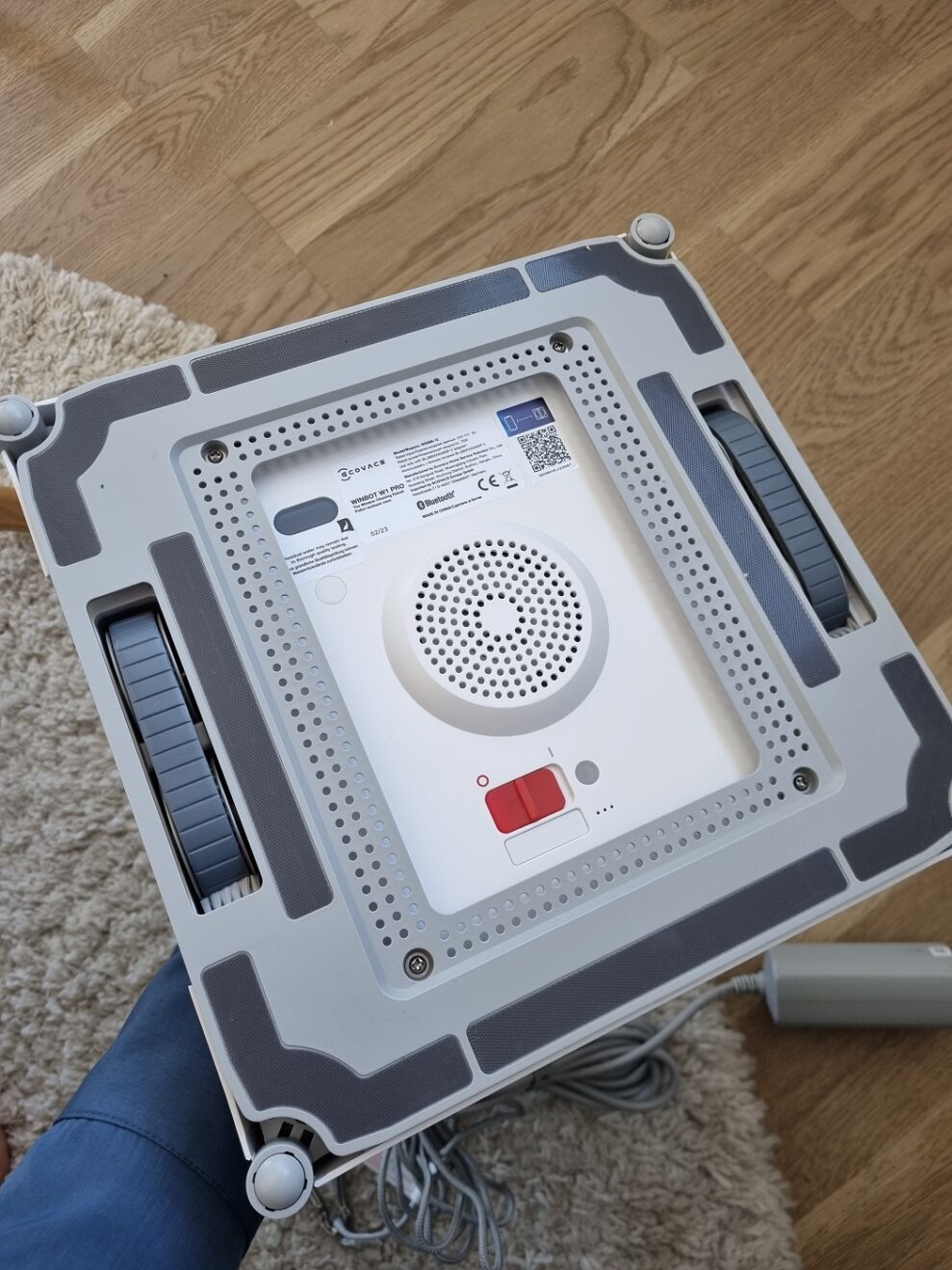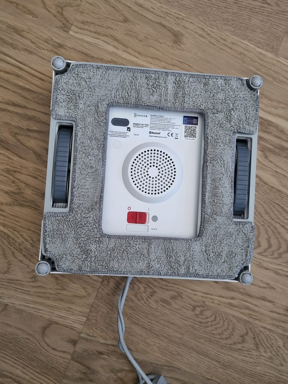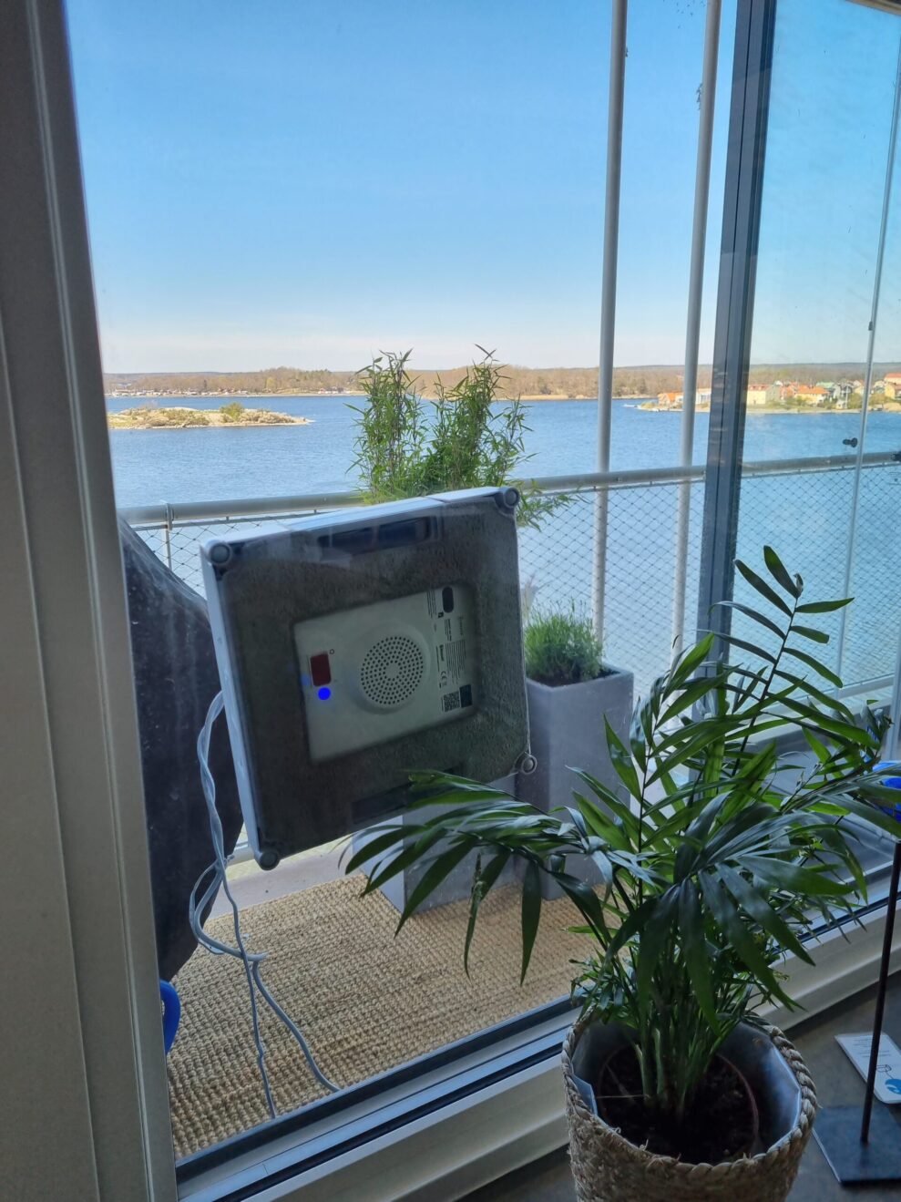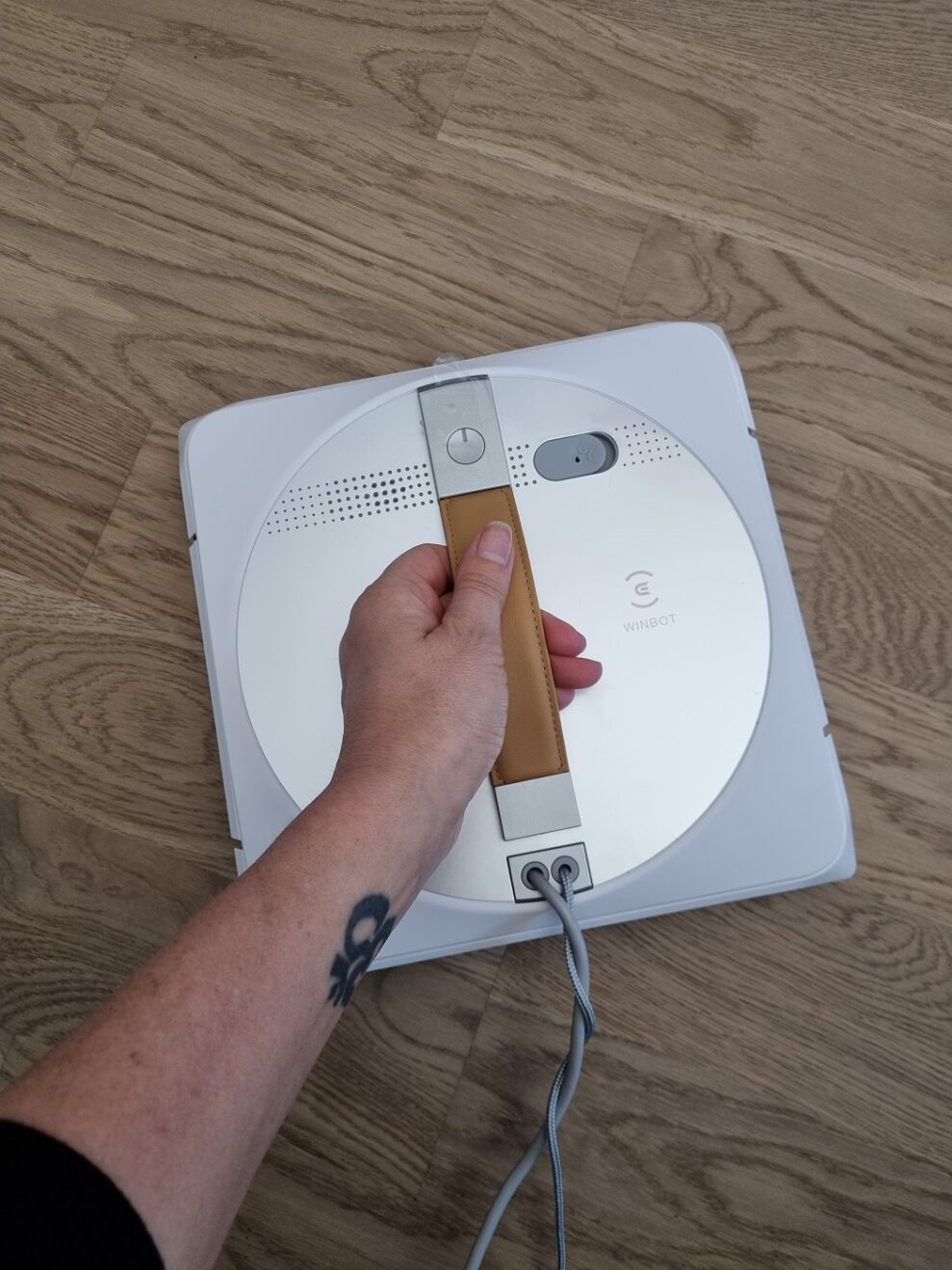 Vi er netop flyttet ind i vores nye bolig, og omkring os er der stadig gang i byggerier. Jeg er lidt næn om vores vinduer, så jeg gør faktisk lidt forarbejde og skyller det værste støv og skidt af ruderne først. Da vinduerne er tørre igen, følger jeg de næsten latterligt enkle instruktioner, og robotten begynder at bevæge sig hen over vinduet.