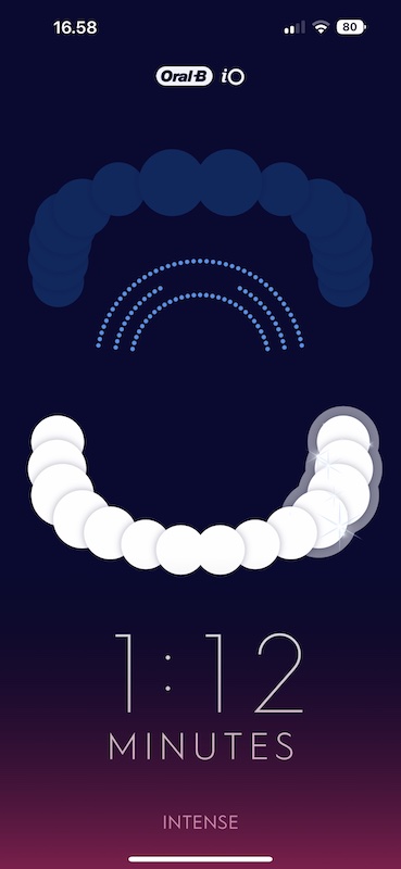 Du kan definere forskellige programmer og tidsmål, og når selve tandbørstningen i gang, kan du ikke blot se dit fremskridt område for område som med iOSense-hubben nævnt ovenfor. Nej, app’en viser et slags tredimensionelt billede af dine tænder, og din tandbørstning følges så i realtid, mens der skelnes imellem, om du børster på ydersiden, indersiden eller på tyggefladen af tænderne.