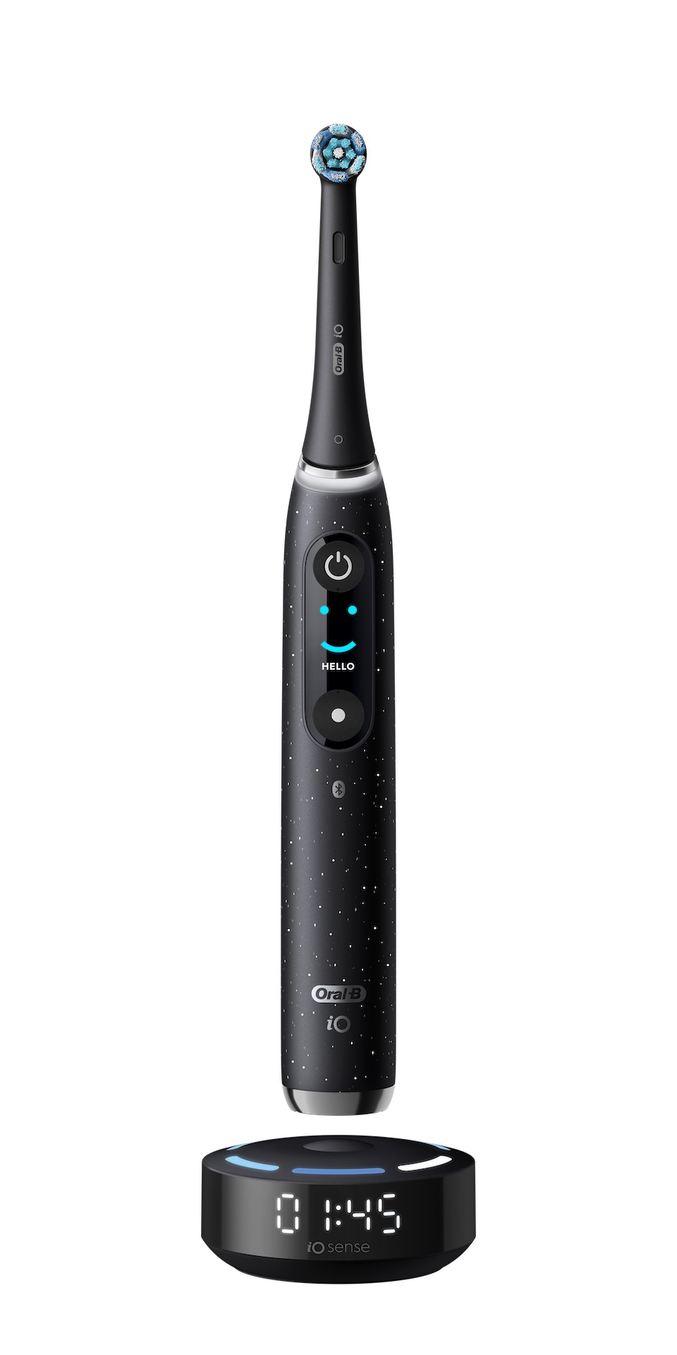 Den kommer med såkaldt iOSense, som er marketingsprog for tandbørstens magnetiske oplader, der samtidig fungerer som hub og i realtid guider dig til, hvor og hvor længe du skal børste dine tænder for at få den optimale rengøring.