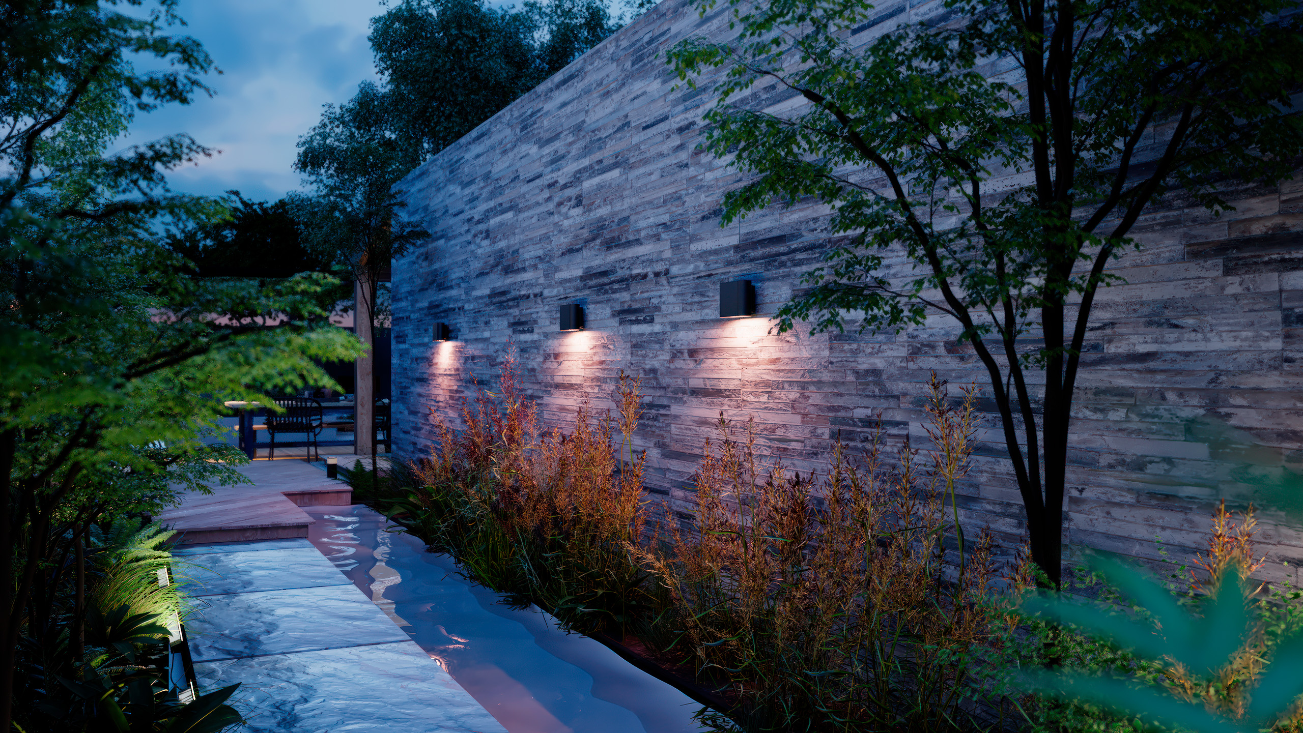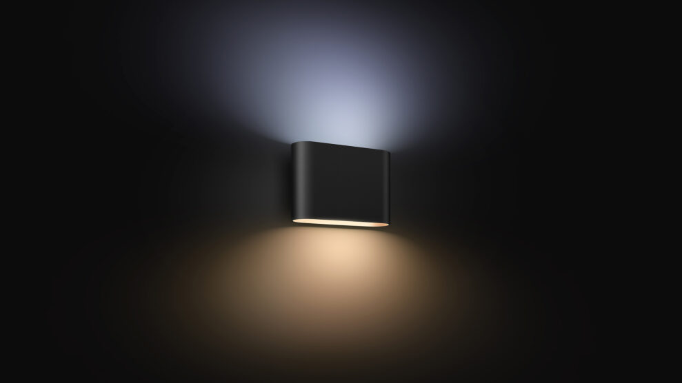 Dymera-lampens særlige partytrick er, at den har to adskilte lyskilder, der kan styres helt adskilt. Det giver mulighed for at lege med lyssætningen og for eksempel skabe et kulørt stemningslys op ad facaden – eller på loftet, hvis lampen bruges inden døre – samtidig med at den nedadrettede lyskilde giver et fokuseret spotlys.