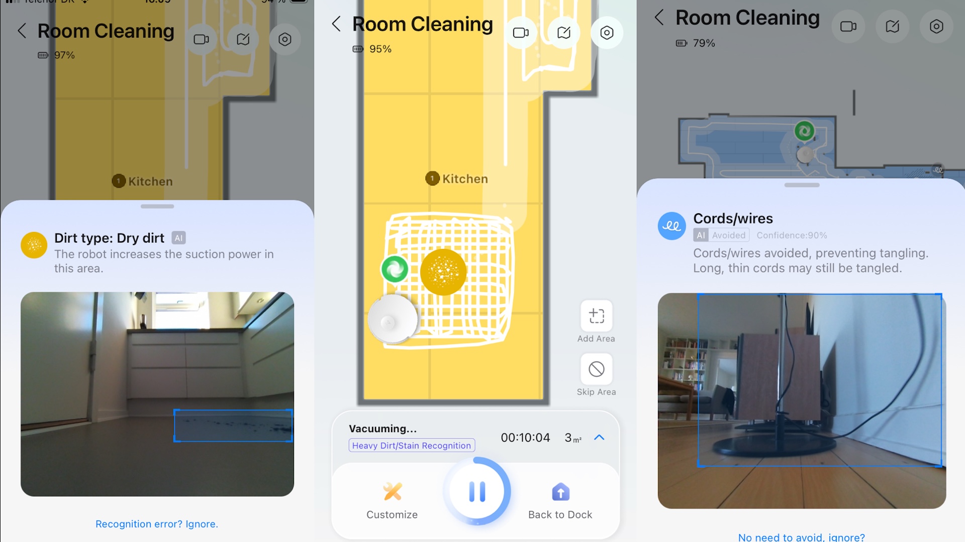 Desværre er Curv 2 Flow uden AdaptiLift, og robotten har svært ved at positionere sig og finde vej til steder, som ellers er kortlagt. Også her er Roborock up to par – men det er ikke positivt ment.