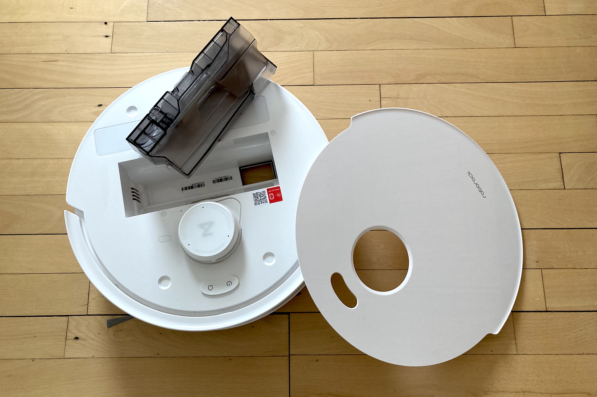 ”Flow” henviser til SpiralFlow Real-Time Self-Cleaning. I praksis tilføjer otte dyser en jævn strøm af vand fra robottens tank til moppen, og en indre skraber fjerner beskidt vand/snavs fra rullens stof. Ganske smart kan tanken tages ud og skylles ren for muligt snask.