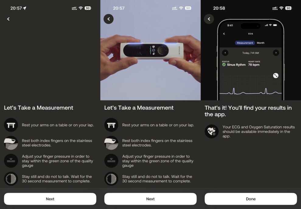 Beskrivelsen “et termometer på steroider” er den hurtige beskrivelse. Selv om den har et kontaktløst termometer, præcis som Withings Thermo, hævdes den også at kunne måle iltningen af blodet og ved hjælp af et ‘digitalt stetoskop’ at kunne lytte til dit hjerte og dine lunger. Det lyder jo som noget nyt, der adskiller den fra konkurrenterne, og som virkelig vil kunne hjælpe mange med hjerte- og vejrtrækningsproblemer. Eller næsten nyt. For deres fem år gamle Withings BPM Core har faktisk også et digitalt stetoskop, selv om det kun kan lytte til hjertet, fordi det sidder, hvor det sidder.