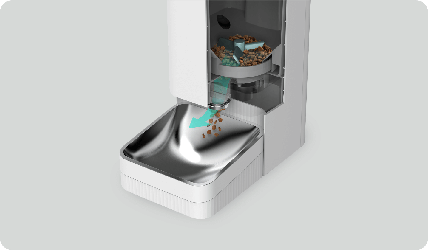 Konstruktionen er faktisk meget ligetil og adskiller sig ikke meget fra de fleste andre automater. Man har en større beholder med en mekanisk mekanisme i bunden, som roterer for at tilføre foderpillerne, så de falder ned i skålen. Beholderen har et låsbart låg med en silikonekant, så foderet holdes friskt, og i låget er der, hvad Xiaomi beskriver som en “patron”, der holder maden frisk og næringsrig.