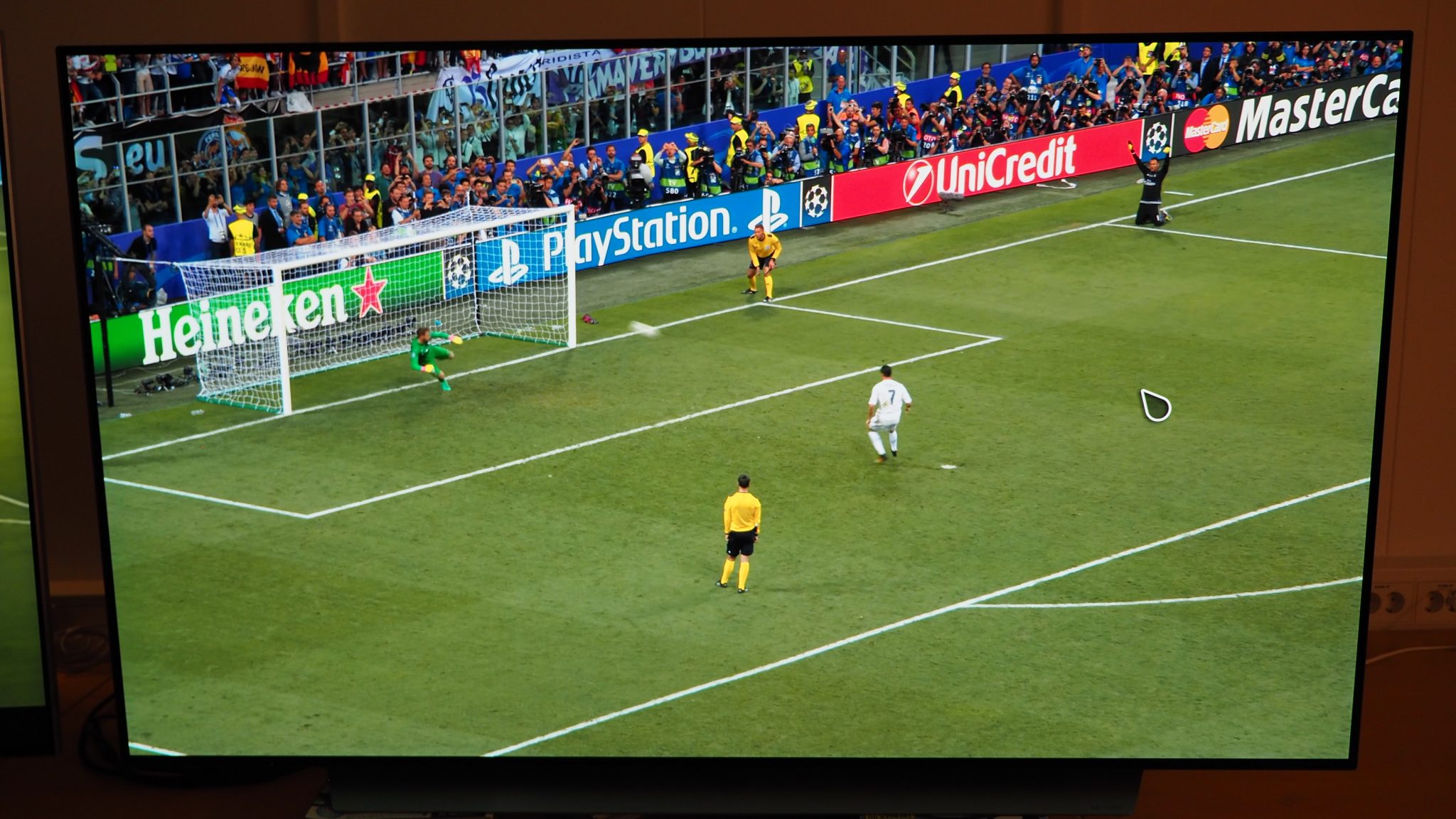 For det første byder LG C1 på alle de typiske fordele, vi er vant til fra OLED: Lysfordelingen og paneluniformiteten er meget homogen, og uden separat bagbelysning er der selvfølgelig ikke mange generende skyggeeffekter, som man af og til kan opleve med LCD. LG-skærmen formår at gengive fodboldbanen uden påfaldende ujævnheder i strukturen. Det resulterer i et meget rent og skarpt billede.