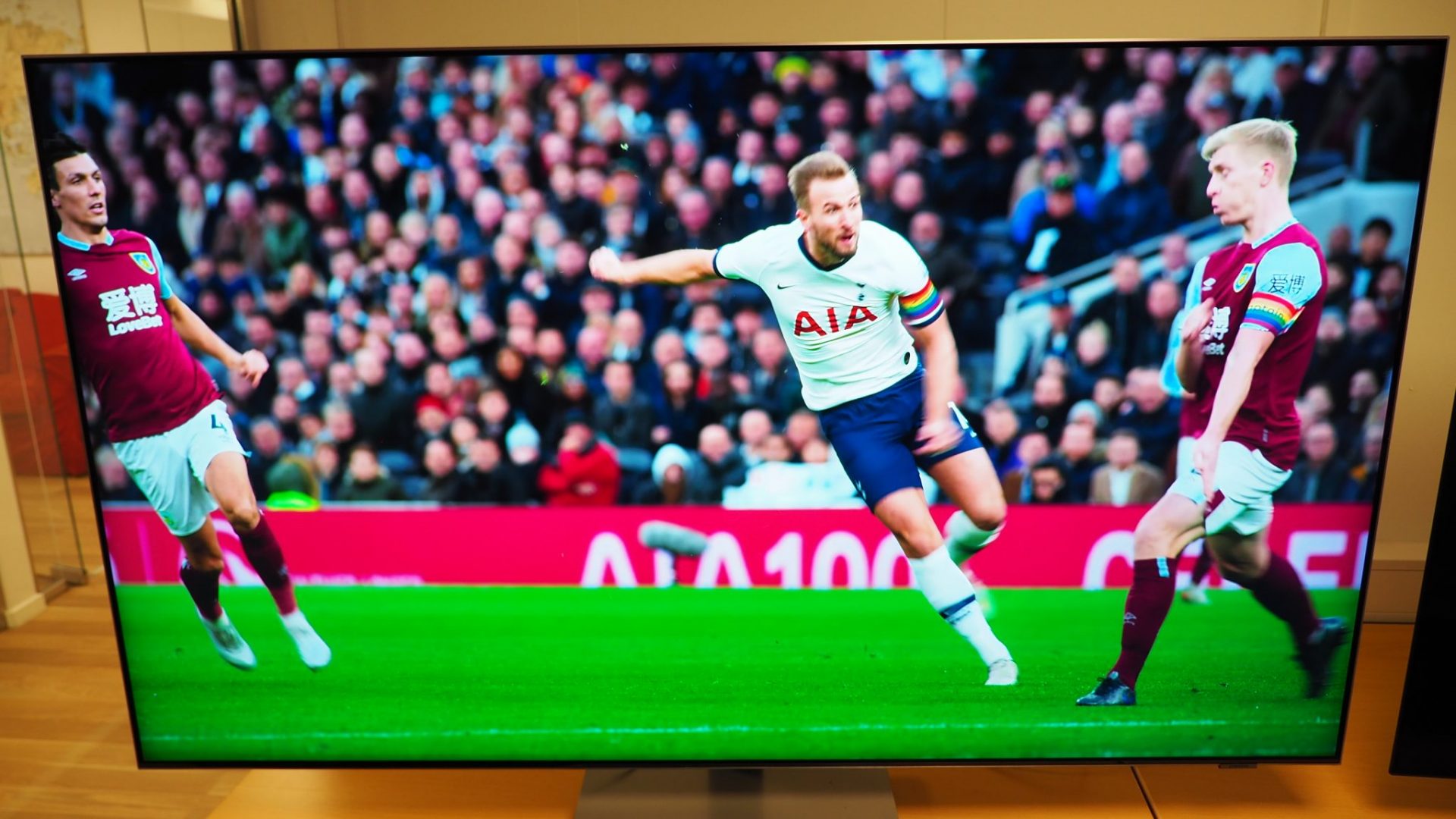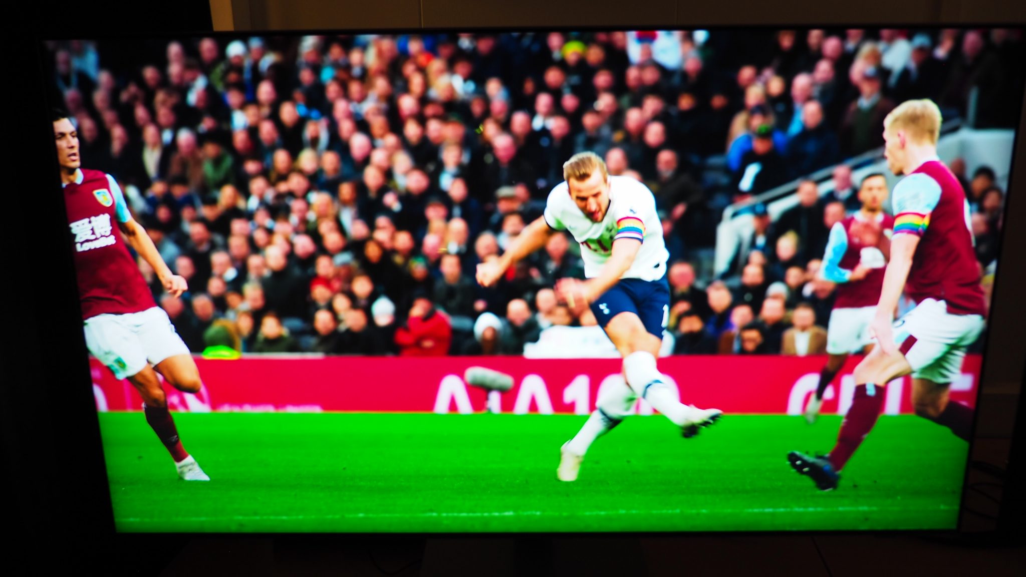 Den saftige kontrast bidrager også til, at QN85A får en meget stærk og nuanceret farvegengivelse. Kombinationen af Mini-LED og IPS virker faktisk ret vellykket, idet farverne bevares, selv når vi betragter skærmen fra siden. Det grønne græs og spillerens dragter stråler mod os med en besnærende glød og realisme.