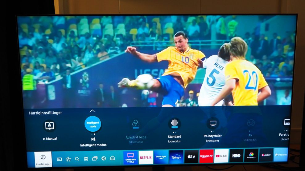 Samsung-skærmen har ikke en separat sportsindstilling, men kommer derimod med en såkaldt adaptiv billedindstilling, der genkender videoindholdet og tilpasser sig efter forholdene. For de puristiske filmkritikere er det selvfølgelig rart at kunne ty til den mere neutrale Filmmaker Mode. Vi synes imidlertid, at Adaptiv-indstillingen fungerer godt til sport med ekstra stærke farver og frem for alt jævne bevægelser.