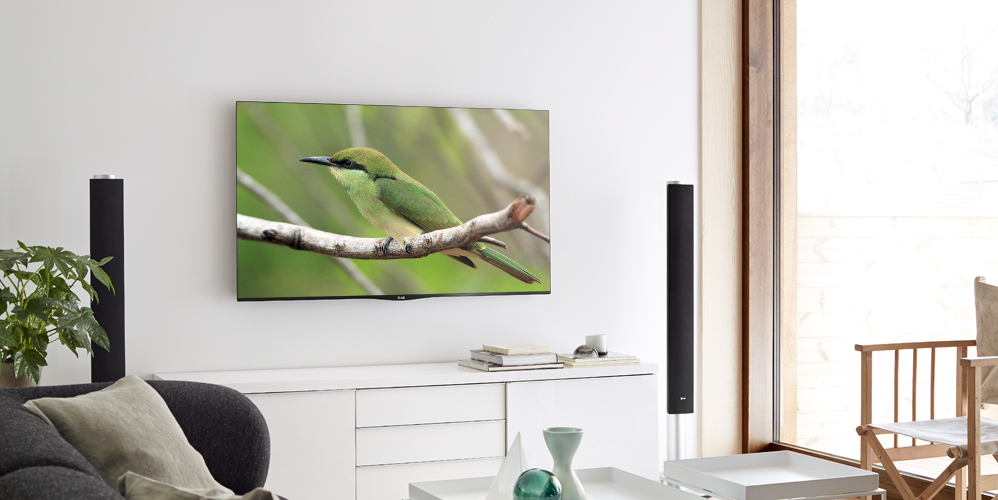 Det her bliver et kort afsnit: LG’s tv er nemlig en ren skærm uden indbyggede højttalere. Det er imidlertid en smal sag at forbinde tv’et med et separat lydanlæg: Man kan benytte HDMI ARC (Audio Return Channel) eller den optiske digitaludgang til at tilslutte en soundbar.