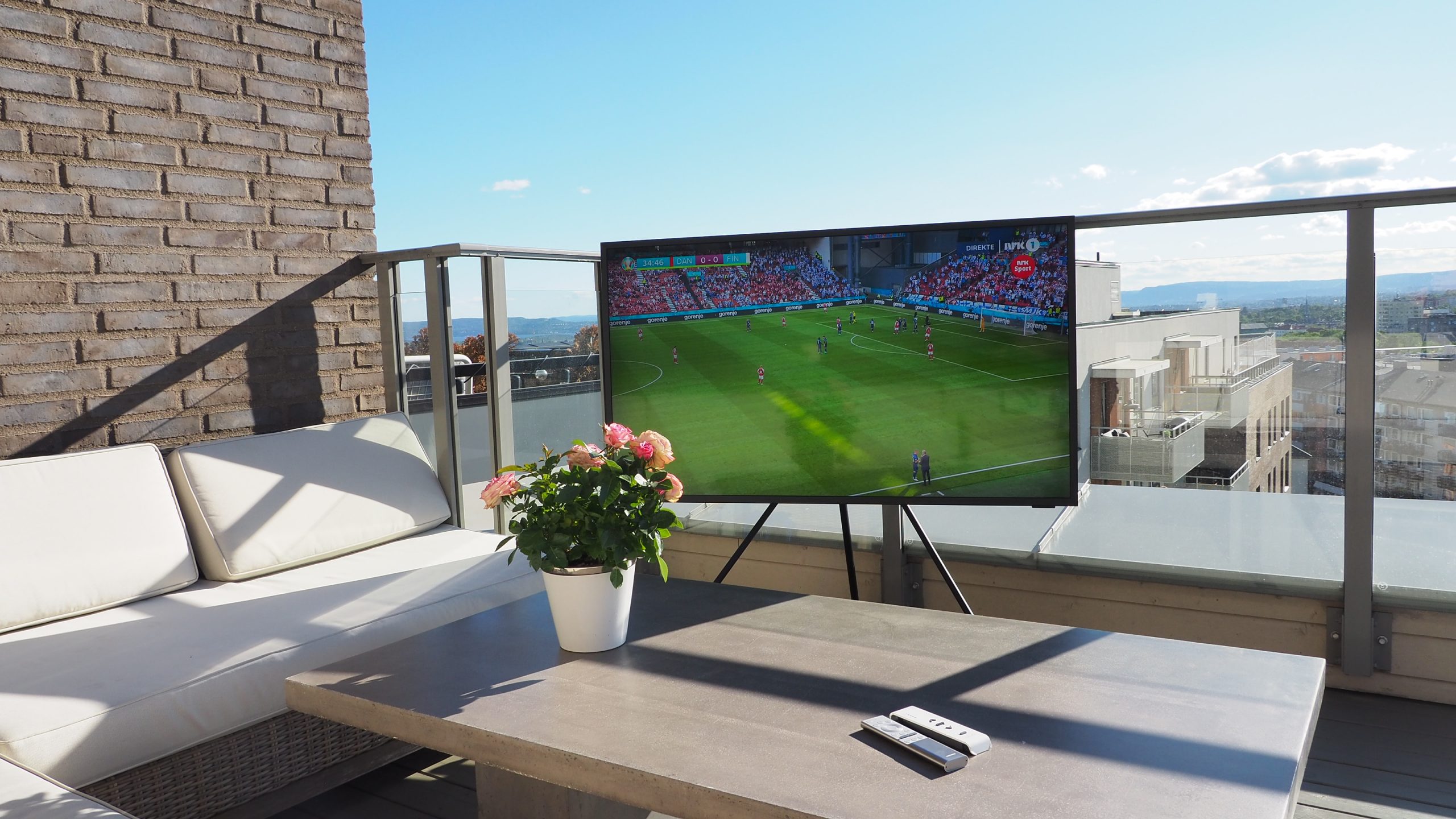 Lyden er også godkendt, men for at sætte prikken over i’et anbefaler vi at supplere med en separat soundbar. Det gælder især, hvis man har et større udendørs område med længere siddeafstand fra skærmen, men er selvfølgelig mindre vigtigt, hvis man har en lille altan med naboer at tage hensyn til.