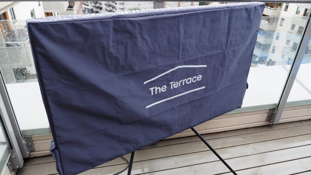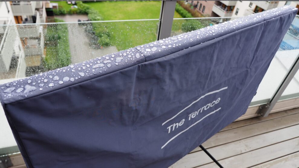 Samsungs brugervejledning understreger imidlertid, at TV’et skal monteres et passende sted i skyggen og i læ for regn, sne og direkte sollys. Der medfølger også et vandtæt “regnslag” til at dække TV’et med, når det ikke skal bruges et stykke tid.