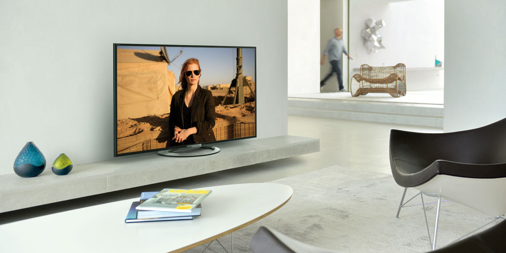Den forkromede fod er også ny og gør det muligt at stille tv’et tæt op mod væggen. Skærmen er slank i kanterne, men fylder en del nederst; Sony har nemlig lavet plads til kraftige højttalere nederst på hver side.