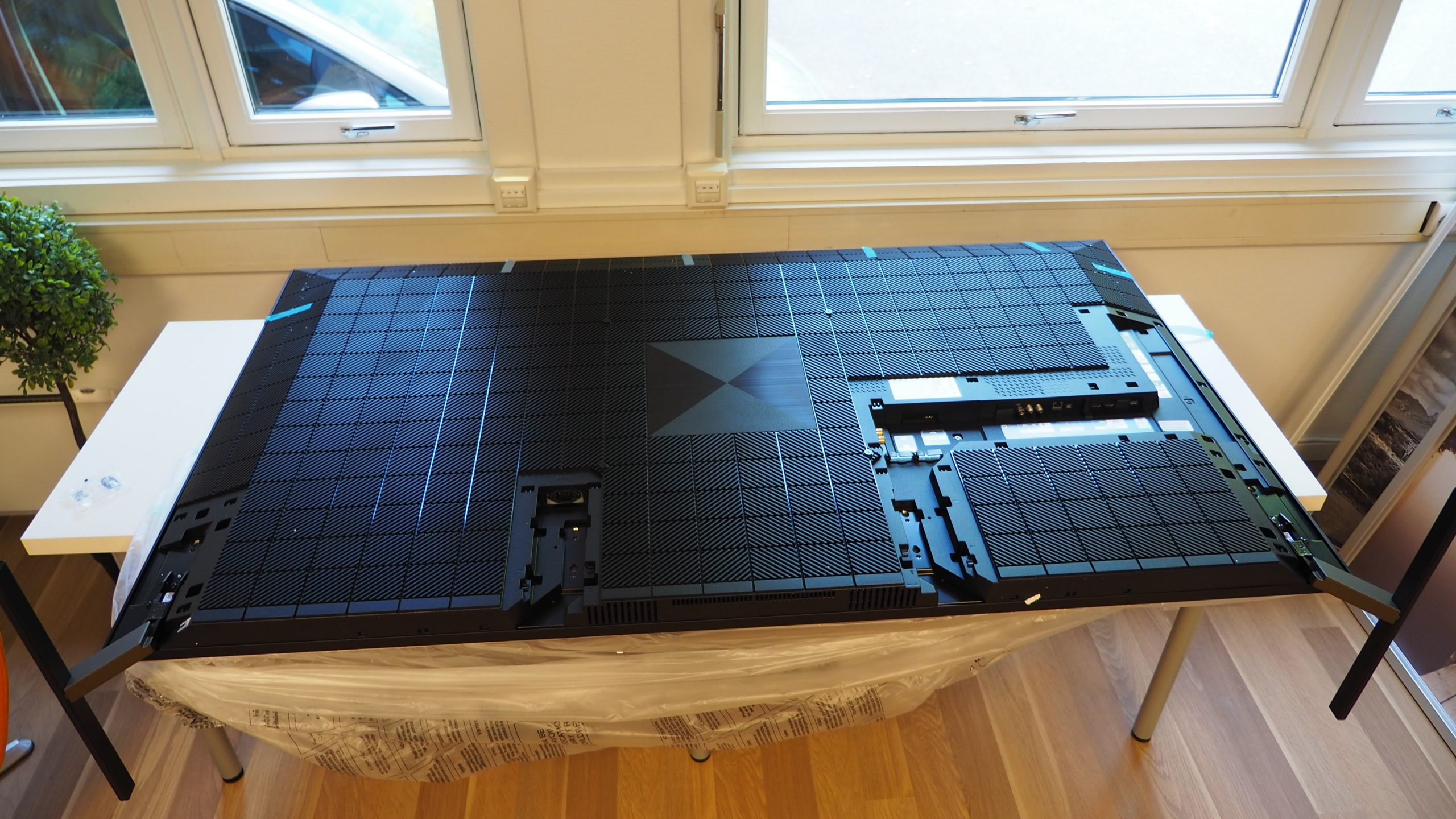 Sony-skærmen gør bestemt et mere massivt indtryk end et åleslankt OLED-TV som A90J. Den er også betydelig tykkere end f.eks. Samsung QN900A (test på vej) med Mini-LED-teknologi. Det skyldes, at Sony anvender konventionel LED-bagbelysning på deres topmodel, som fylder væsentlig mere.