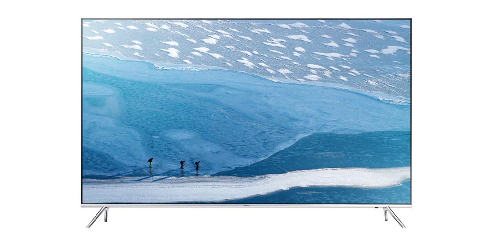 7-serien fra Samsung kommer både i en flad (KS7005) og en buet (KS7505) version, og denne gang har vi set nærmere på den flade. Designmæssigt er der tale om en ganske enkel affære med tynd, afrundet ramme og to V-formede fødder i hver sin side. På grund af fødderne skal tv-bordet være mindst lige så bredt – hvis ikke er vægmontering selvfølgelig en mulighed.