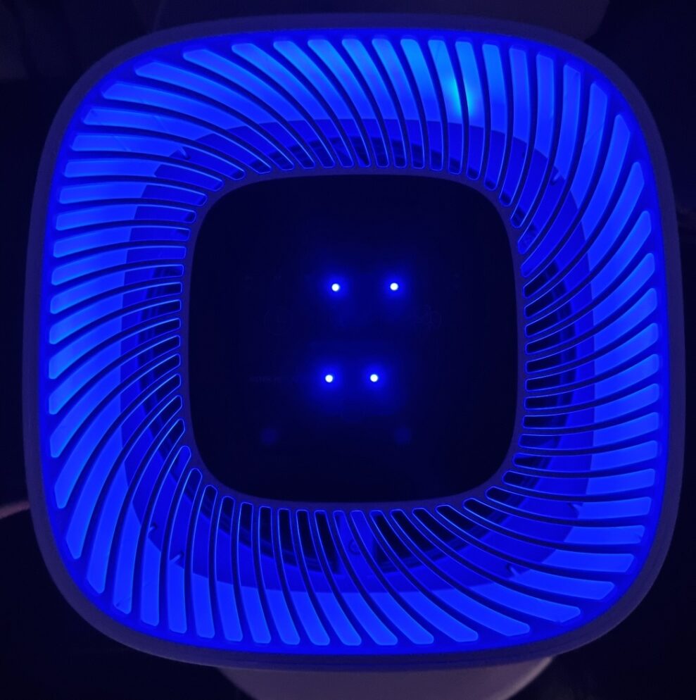 På toppen er der et display med touchpanel, hvor du kan foretage en række forskellige indstillinger, såsom at justere blæserhastigheden, og vælge om du vil have UVC tændt. I dagslys fungerer dette fint. Men i mørke ser du ikke andet end de små blå lys, fordi panelet ikke har baggrundsbelysning. Selv tænd/sluk-knappen kan ikke findes i mørke, hvis du ikke ved præcis, hvor den er. Et first world problem, men stadig godt at vide.